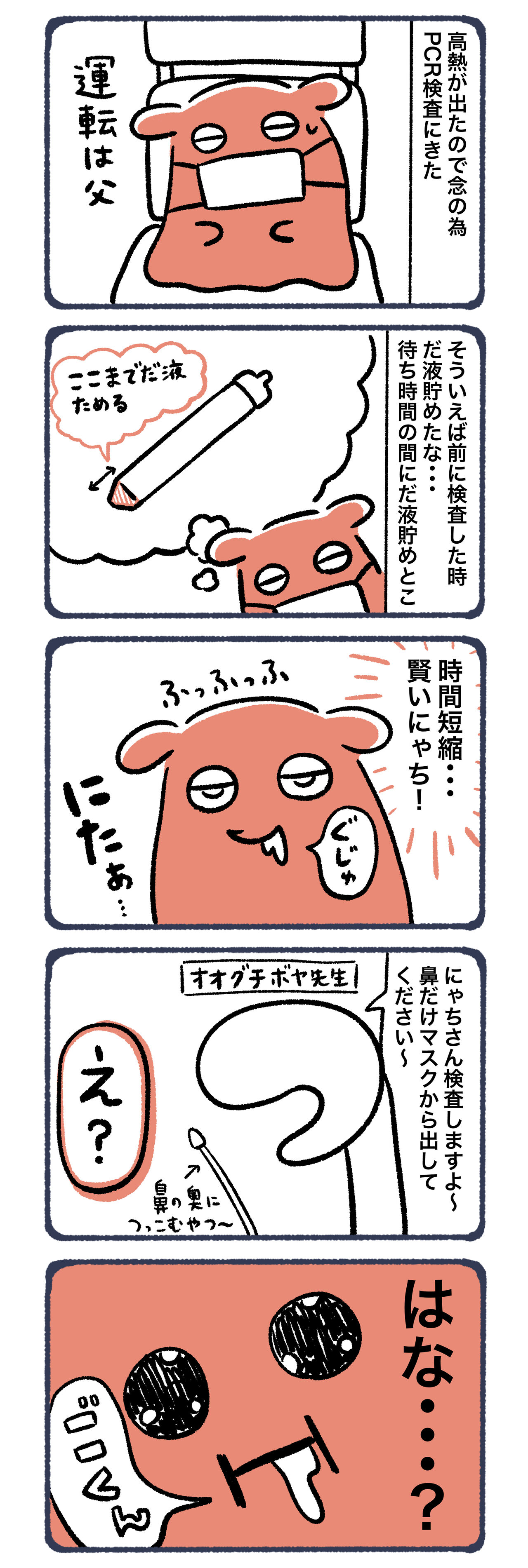 2022年05月21日 せっかくためたのに・・・ 前に検査した時は周りからコロナが出たため、念の為にPCR検査に行きました。その時はだ液をプラスチックの入れ物にためて提出しました。今回も同じかと思い、時間短縮できるかと思ってためていたのに・・・だ液を・・・ じゅるりら結果は陰性でした!結局この熱は風邪なのか?早く治すためにいっぱい食べよ!!!気温差が激しいので皆さんも体調にお気をつけください〜▼LINEで更新通知が受け取れます!ランキングに参加しています!▼よかったらポチッてしてね! にほんブログ村 「にゃちの日常」カテゴリの最新記事