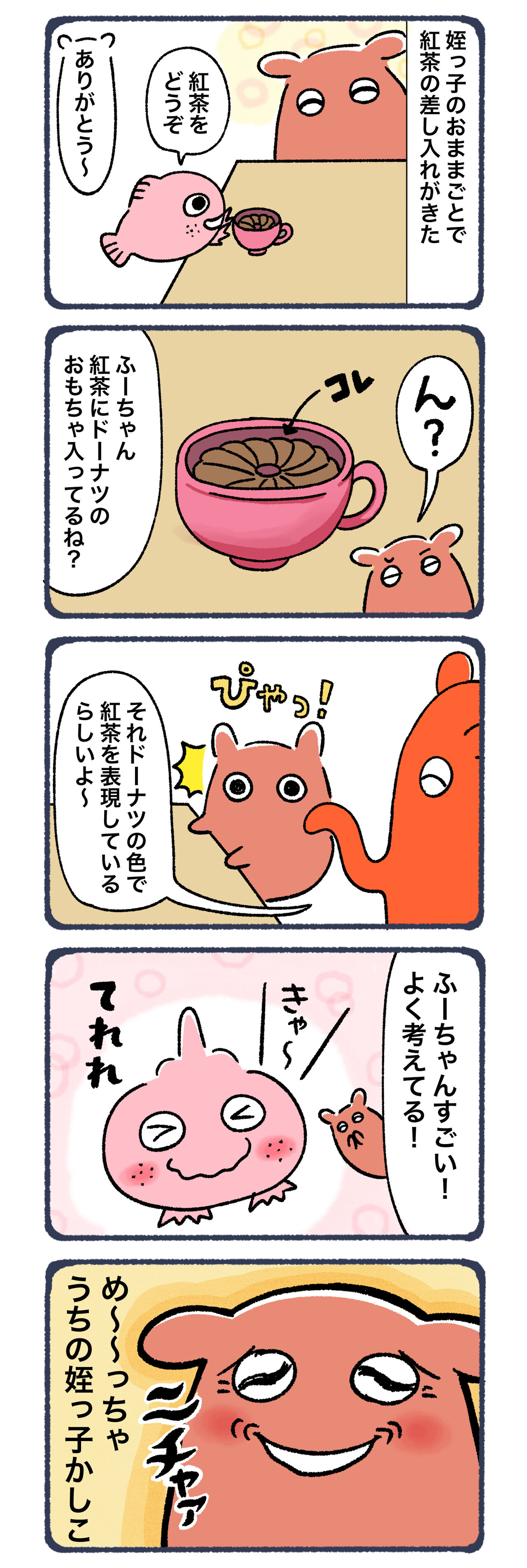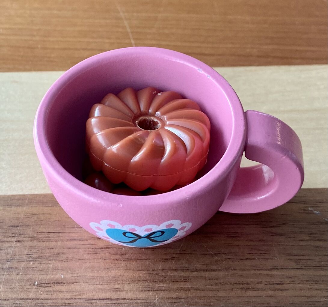 ドーナツのおもちゃを紅茶の色に見立てる・・・