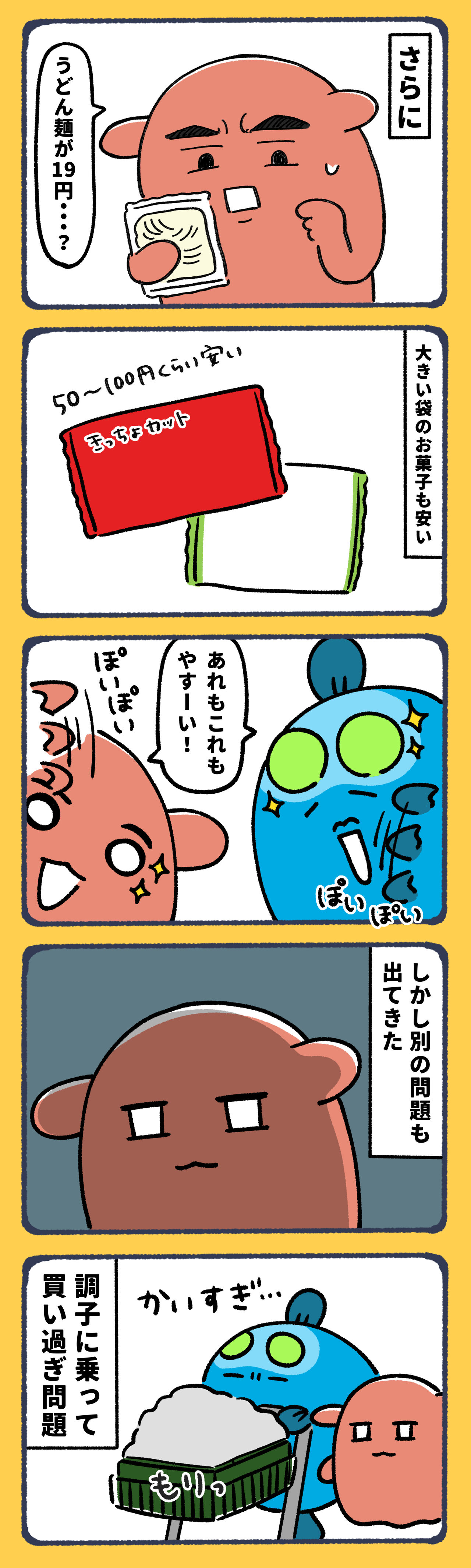 2023年09月20日 最近よく行くお店③ 安い安い!といろいろ買い過ぎて10000円も買い込んだ・・・みんなはよく吟味して買おうね!でもペット用品とお菓子はやすかった!食品も安いものがあったのでいろいろ見てみるといいかも最初の苦手意識はどこへやら・・・母と共にドンキにハマっいったにゃちなのでした〜 次のお話はこちら▼明日の夜更新前回のお話はこちら▼ ▼LINEで更新通知が受け取れます!ランキングに参加しています!▼よかったらポチッてしてね! にほんブログ村#コミックエッセイ 「にゃちの日常」カテゴリの最新記事