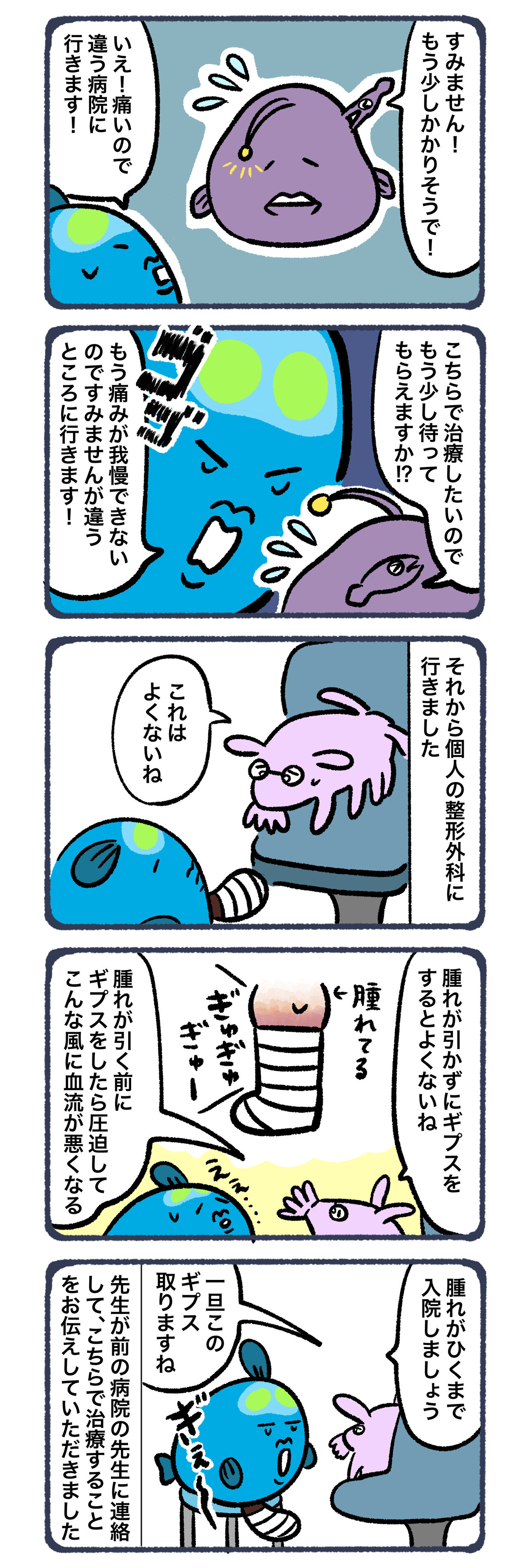 命の危険がある方が先なので助かりますようにと祈りつつ整形外科へ移動しました。
